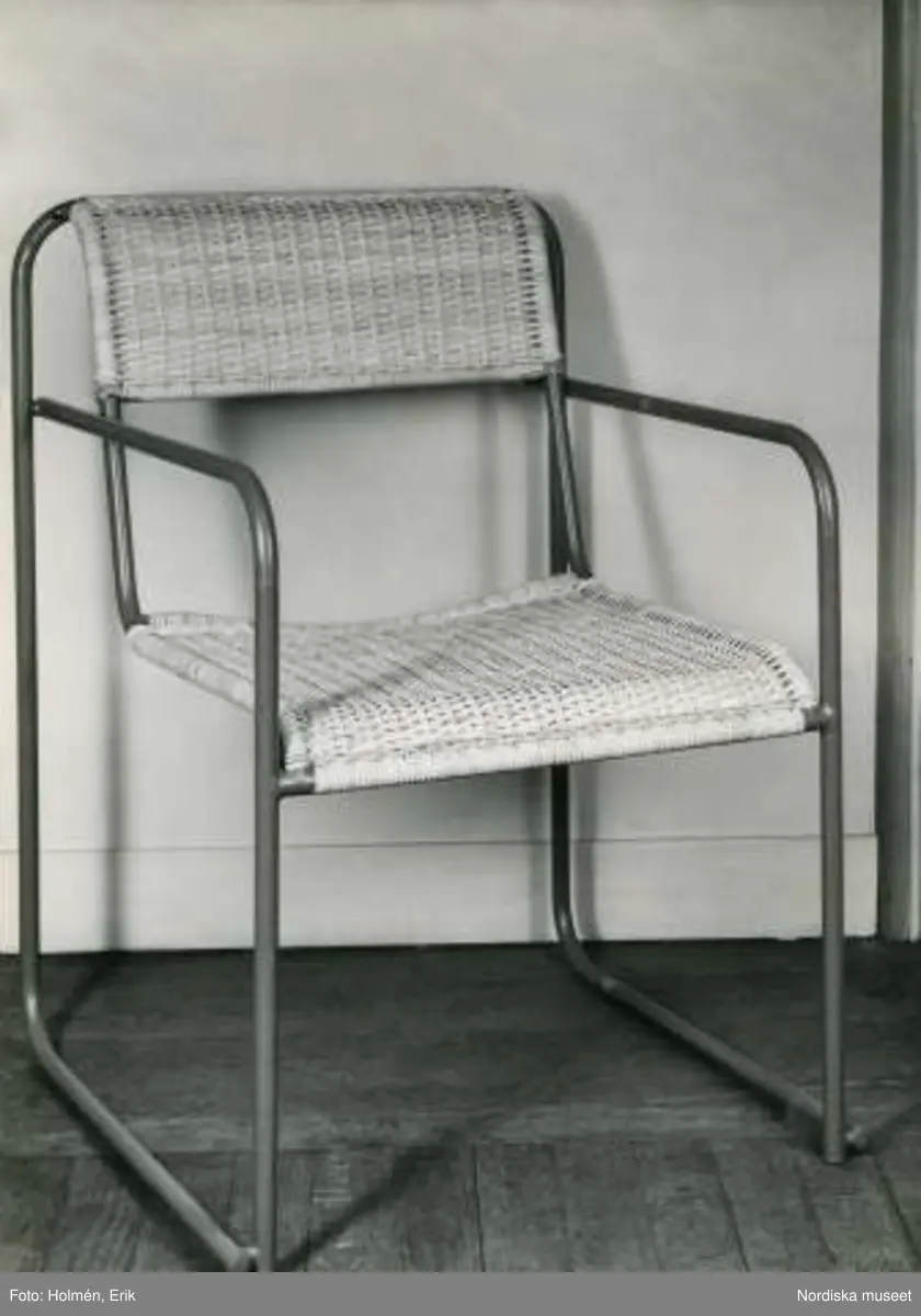 Stålrörsstol med armstöd och flätad sits och -ryggstöd. 1930-tal. Nordiska Kompaniet.