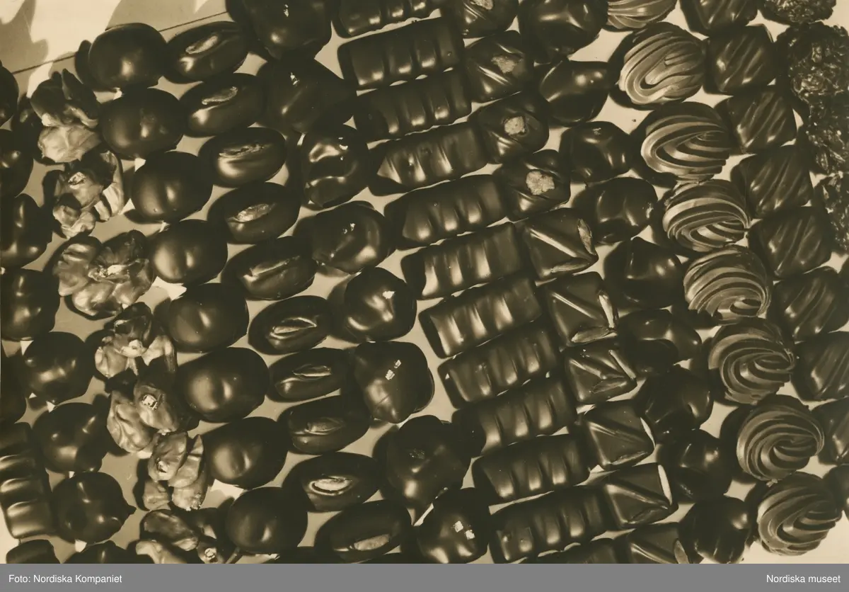 Chokladbitar. Stämpel på baksidan: "Fotograf Erik Holmén, tel 13219, Regeringsg. 80. Stockholm". Med blyerts: "AMF".