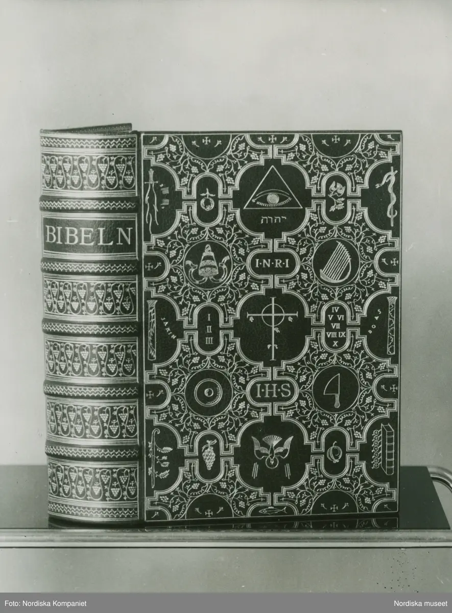 Bibelpärm. Text med blyerts på baksidan: " H F Stockholmsutställningen maj 1930"