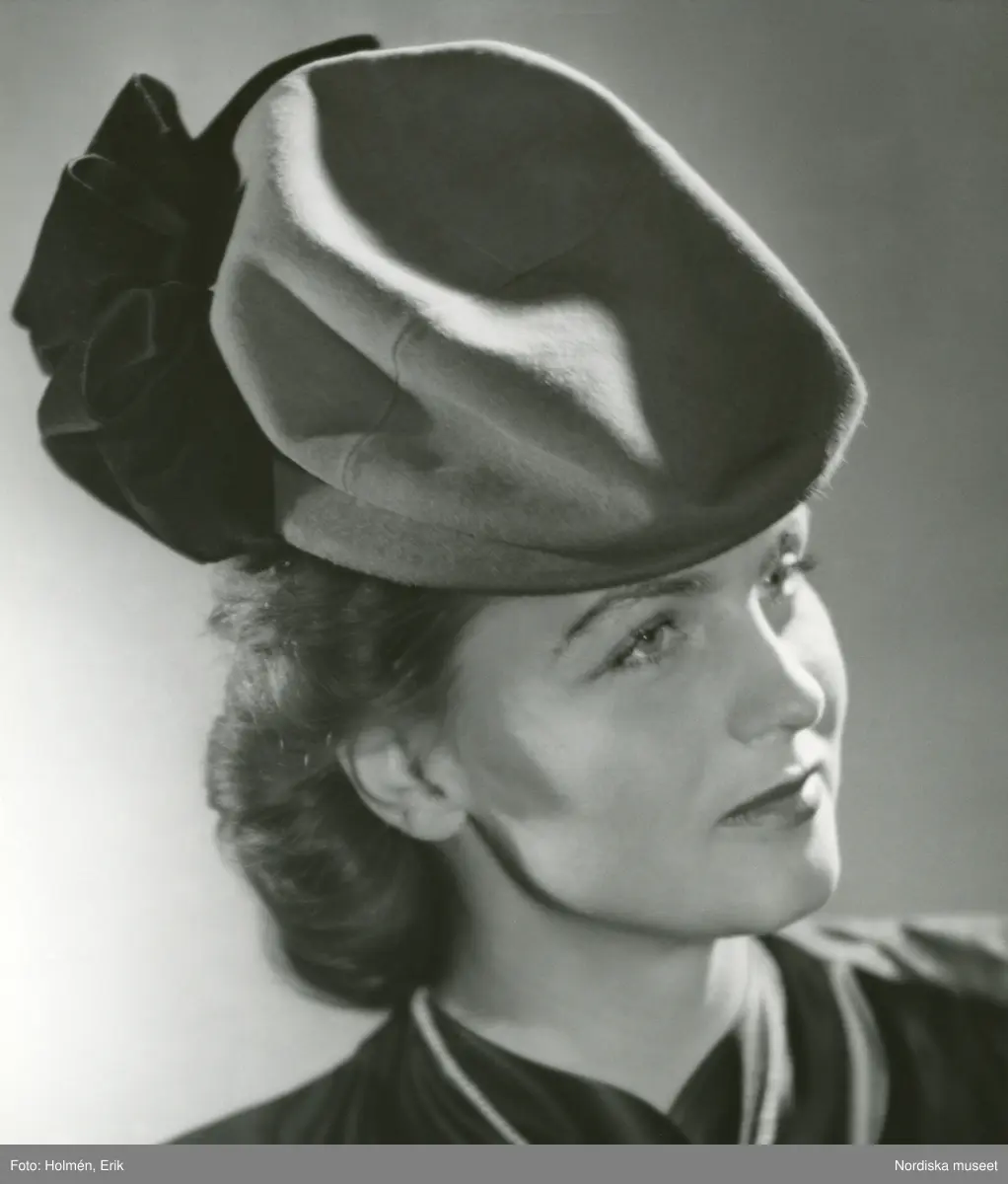 Porträtt av kvinna i hatt med svart dekorband baktill av Madame Suzy.