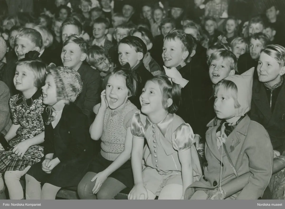Publik med barn. Nordiska Kompaniet. Text med blyerts på baksidan: "Julbilder Barnveckan"