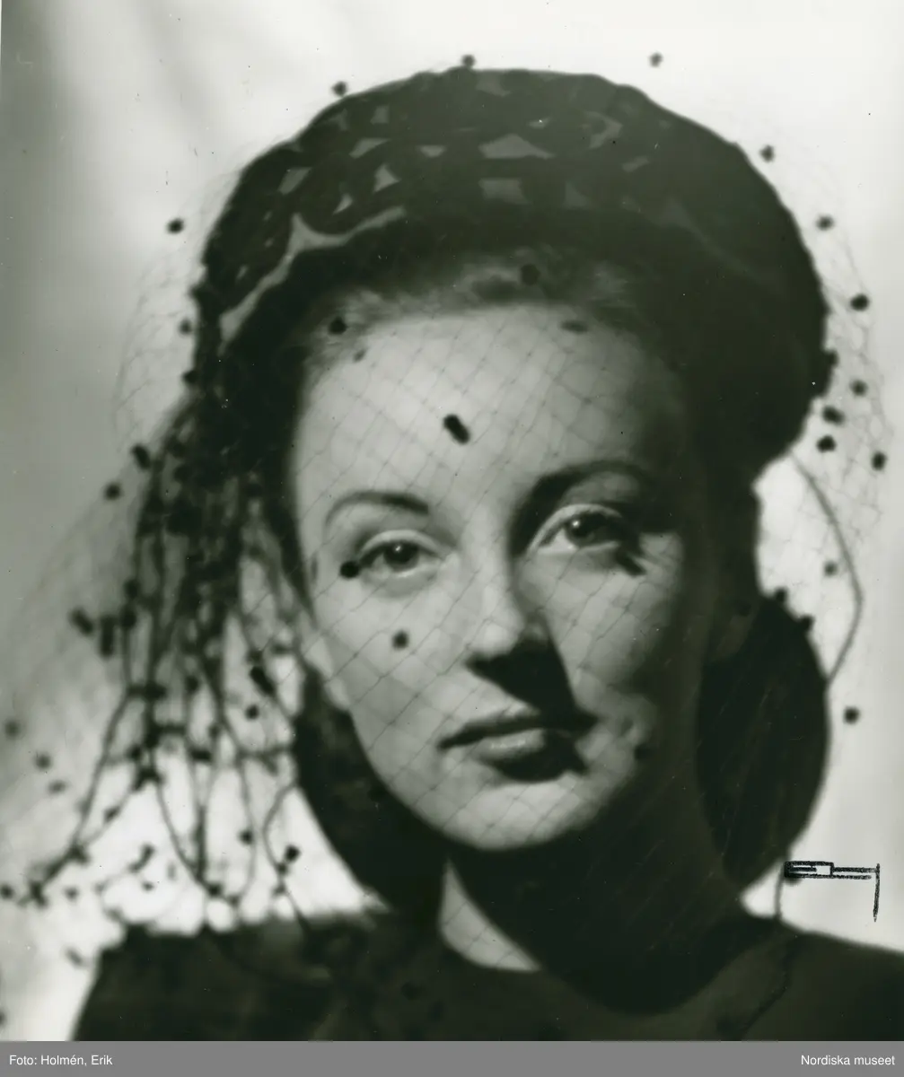 Porträtt av kvinna i hatt med flor med mörka moucher av Suzanne Talbot.