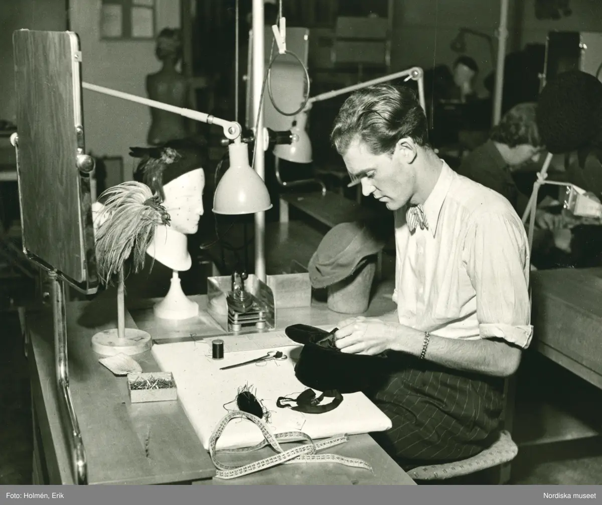 FA, Damhattateljén på Nordiska Kompaniet. Man tillverkar hattar.