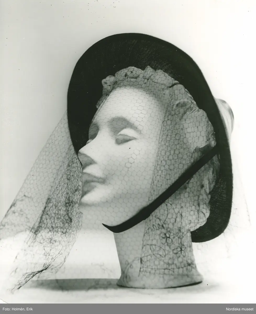 FA, Damhatt med flor och hakband på skyltdocka.