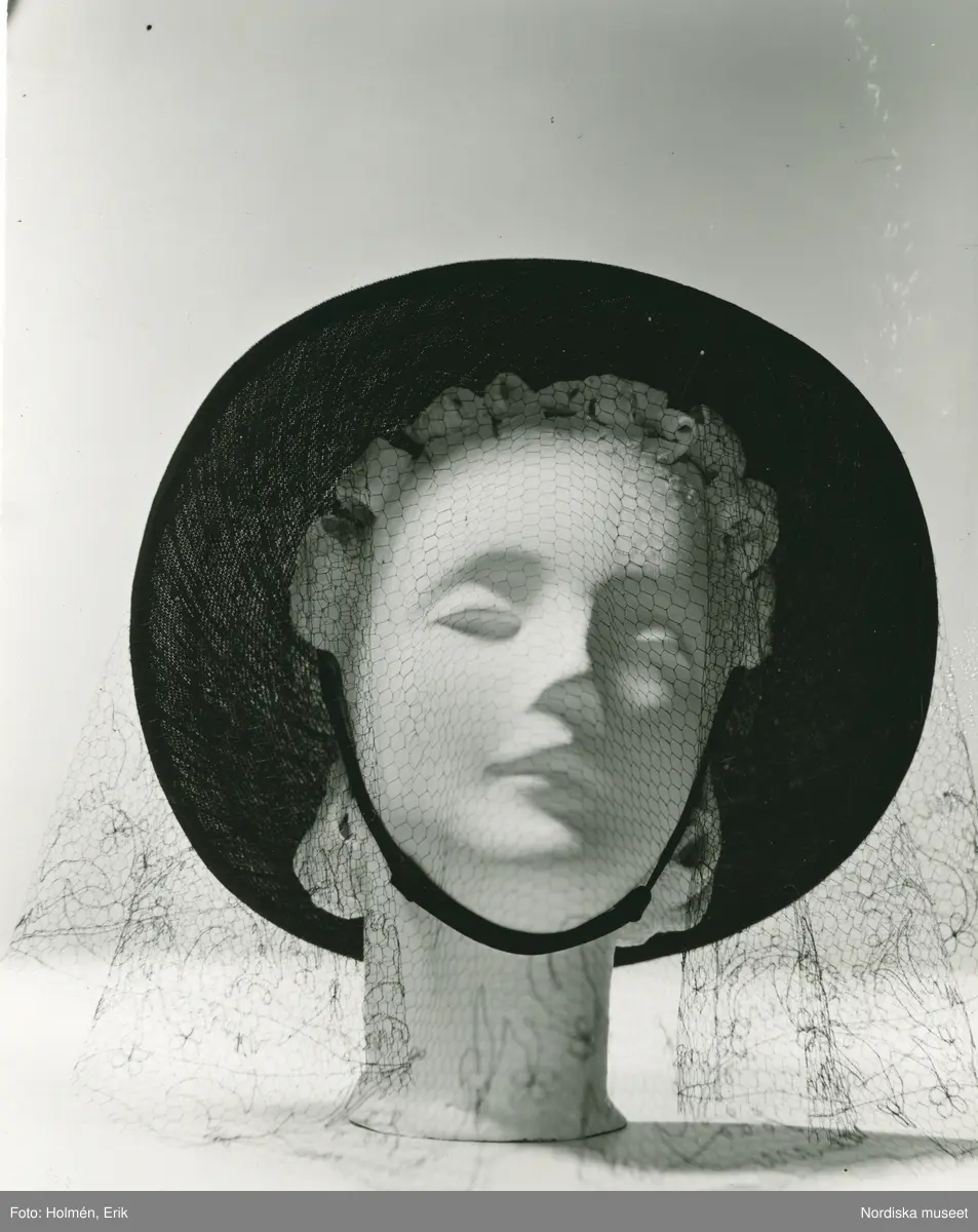 FA, Damhatt med flor och hakband på skyltdocka.