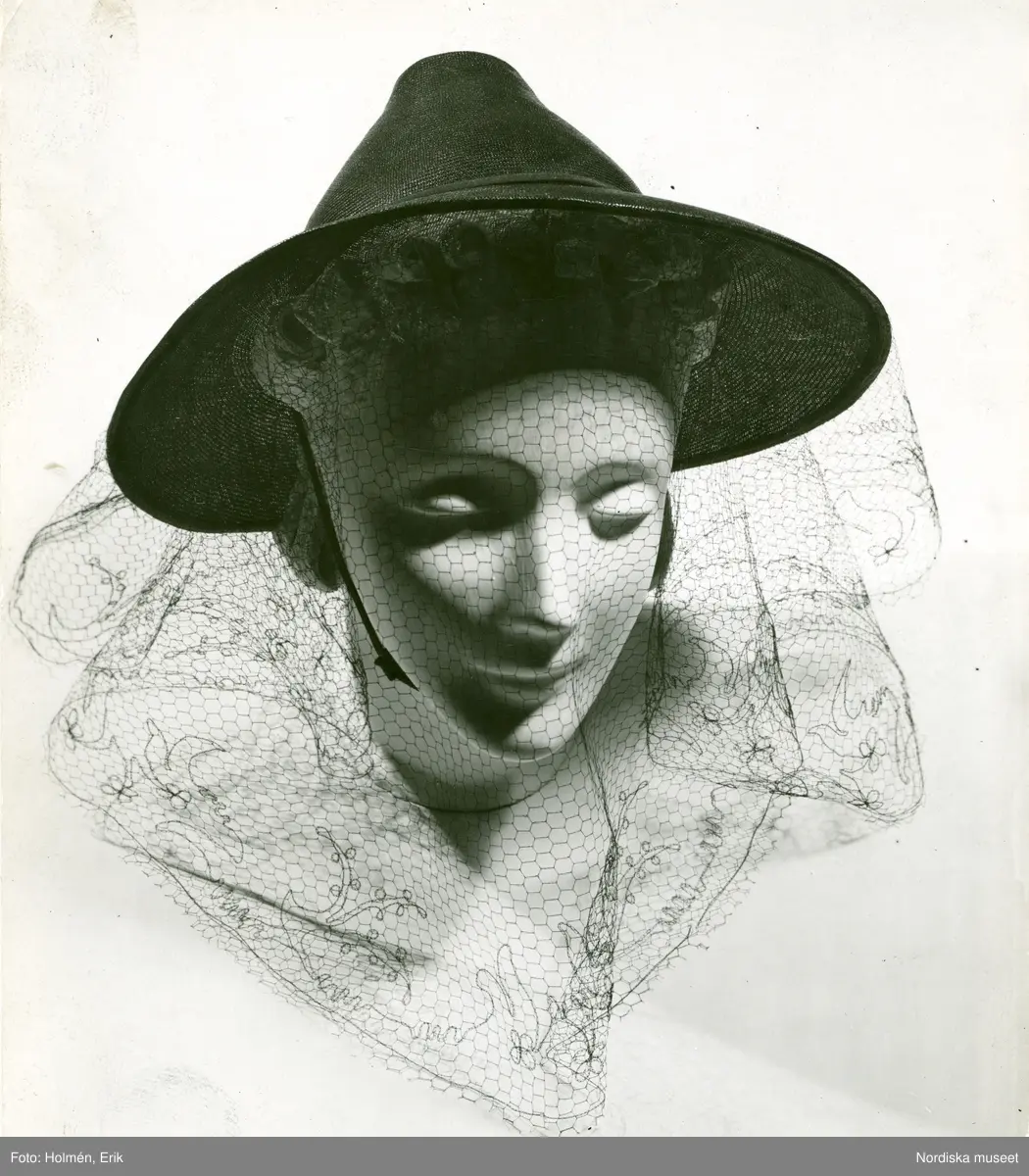 FA, Damhatt med flor och hakband på skyltdocka.