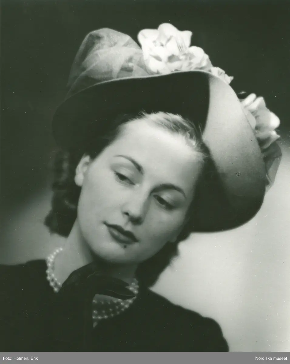 Porträtt av kvinna i hatt med garneringar, av Monsieur Erik.