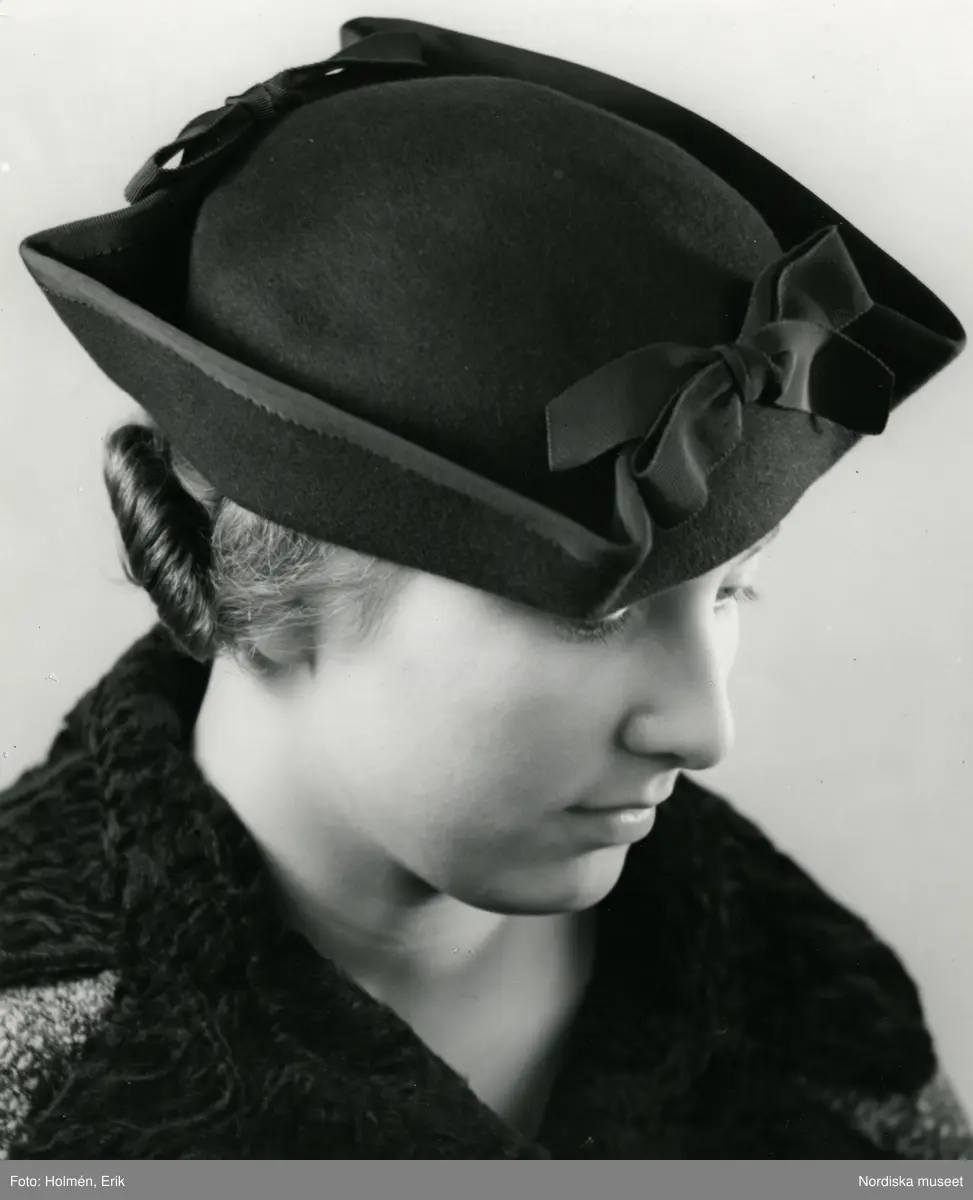 Modell i filthatt, Tulipe noire. Egen atelier. Nordiska Kompaniet, Stockholm.