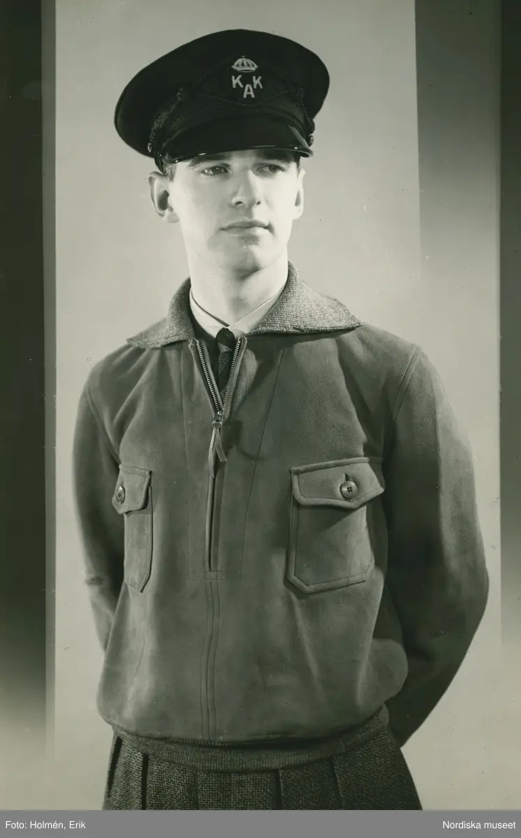 Porträtt av en man i sportjacka och skärmmössa från Kungliga Automobil Klubben.