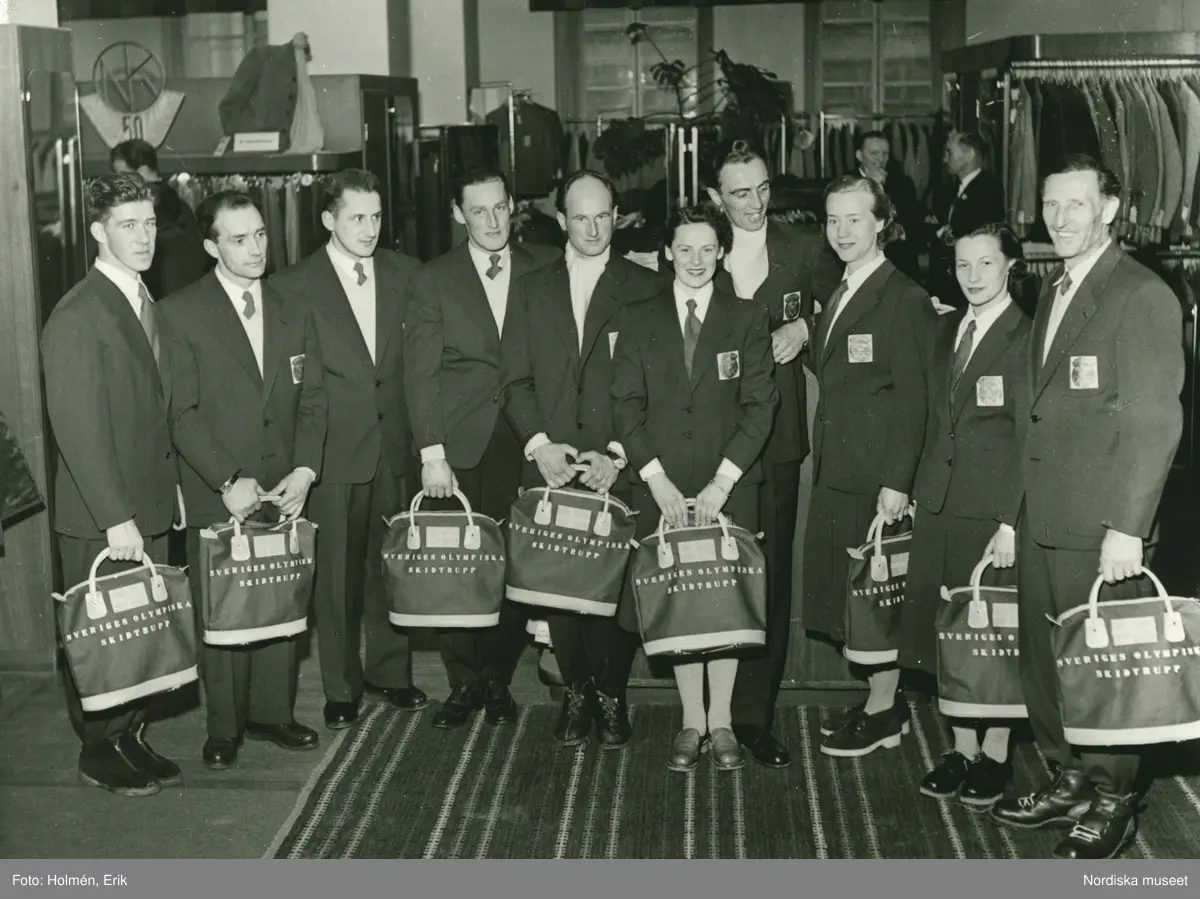 Grupporträtt av utförsåkare med en av ledarna, Olle Rimfors.