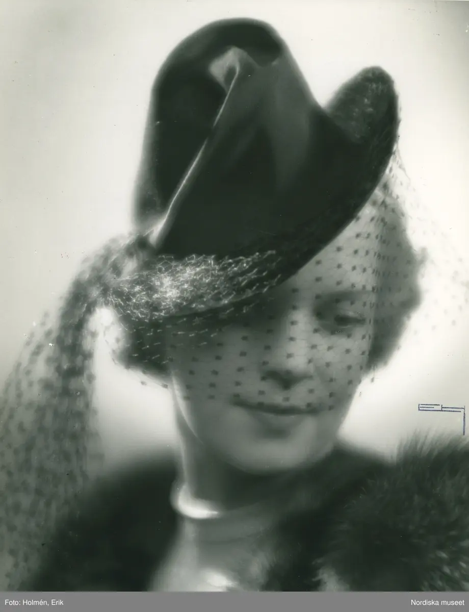 Fb, Porträtt av kvinna i hatt. Flor med moucher.