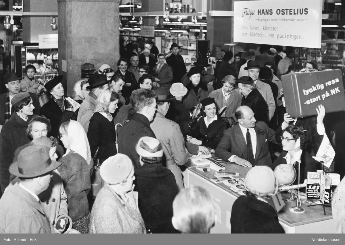Hans Ostelius informerar om resor på Nordiska Kompaniet.