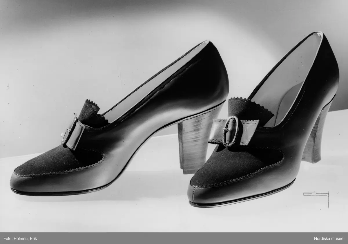 Ett par promenadpumps, sandfärgade "modecalf" med brun isättning.