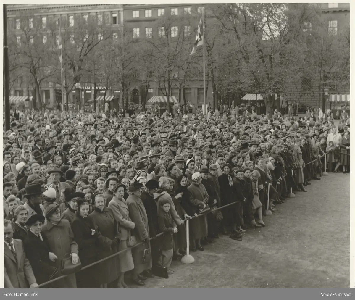 Stor publik följer visning av tonårsmode i Kungsträdgården i Stockholm, Nordiska Kompaniet.