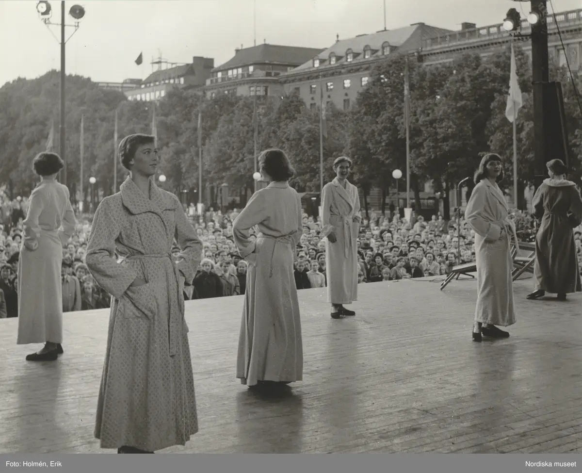 Lia Selmbert-baletten uppträder i Kungsträdgården i Stockholm, Nordiska Kompaniet. Modeller i badrockar.