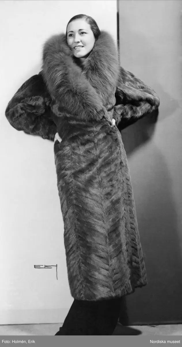 Beigefärgad hermelin, krage av beigefärgad räv. Nordiska Kompaniet.