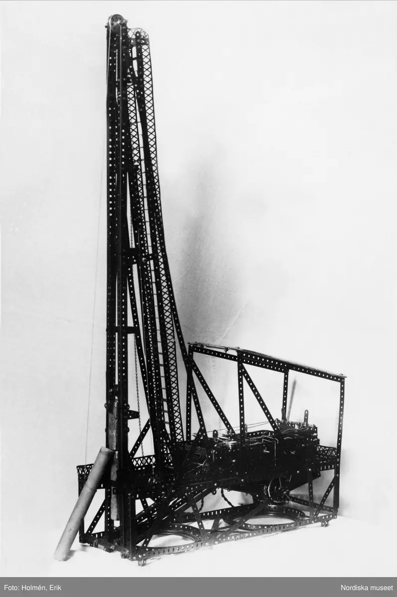 Modell av lastkran byggd av meccano. Nordiska Kompaniet.