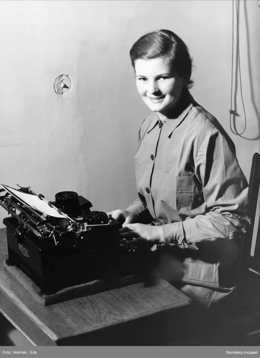 Anna Lisa Wadman vid en skrivmaskin. Nordiska kompaniet.