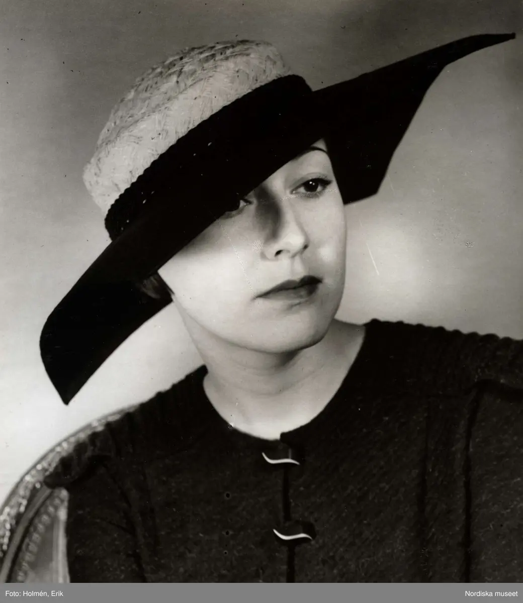 Nordiska Kompaniet, dammode. Vårhatt, ljus kulle med svart brätte, 13 mars 1934