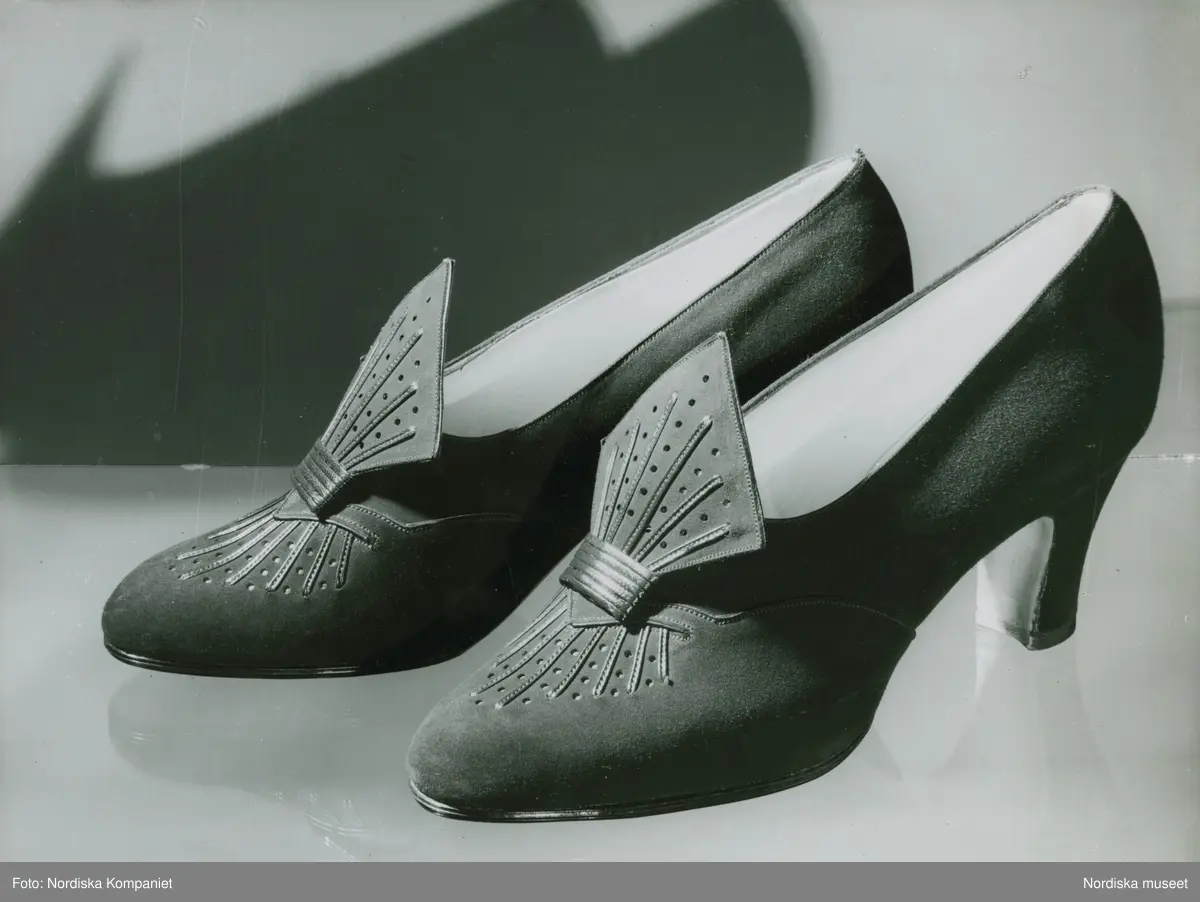 Pumps, plös, perforeringar, dekorsömmar, klack.