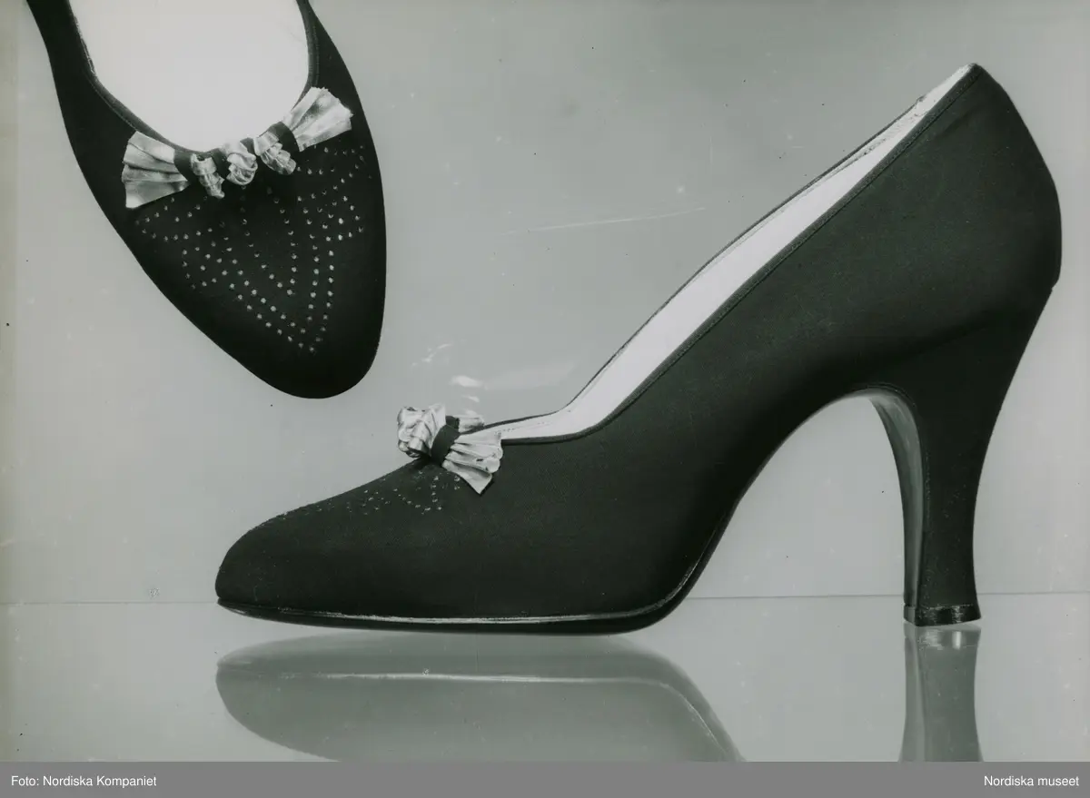 Sko med klack, perforeringar, rosett.