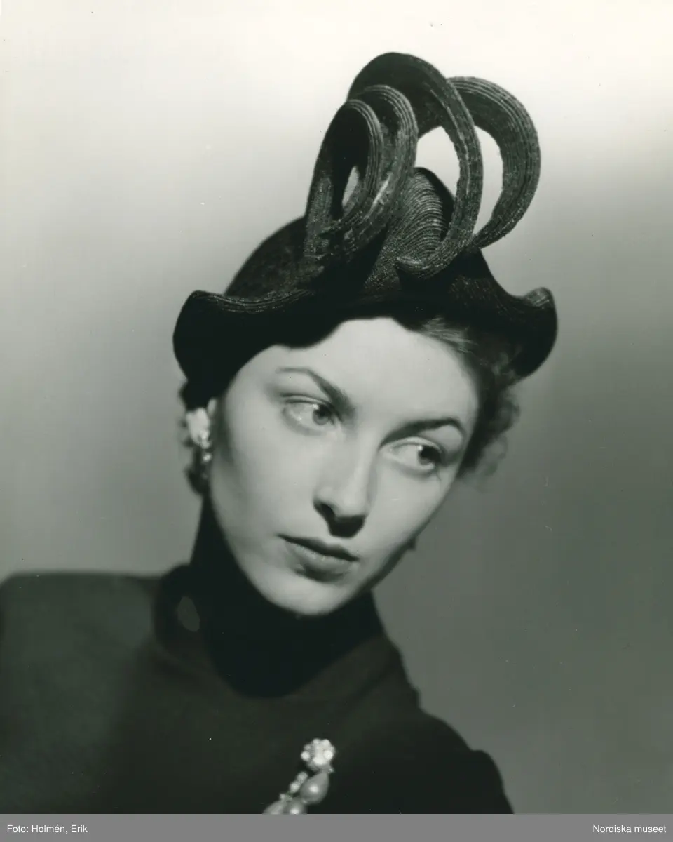Porträtt av kvinna med svart stråhatt. Modell av Madame Paulette