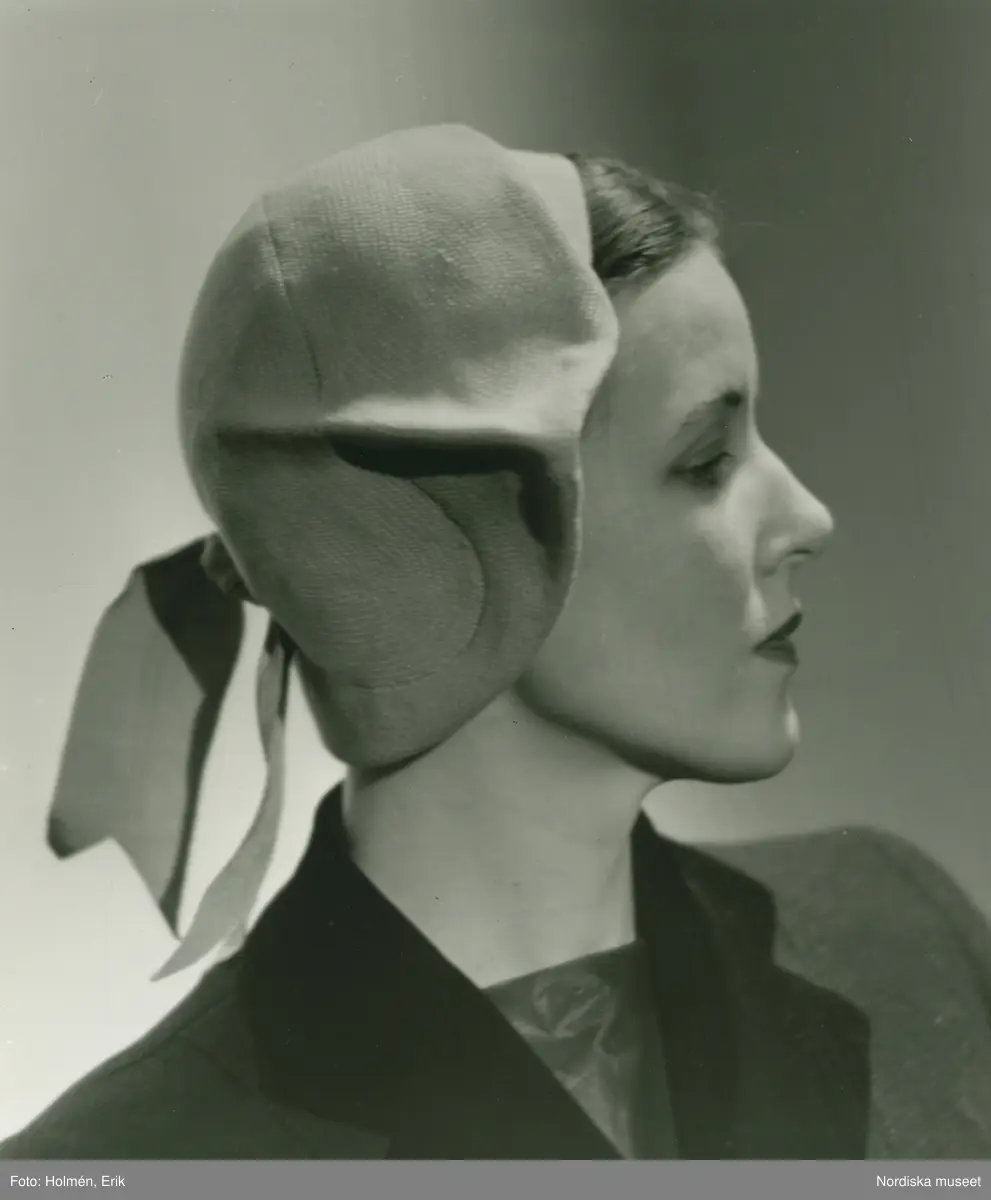 Porträtt av kvinna i hatt av Jacques Fath.