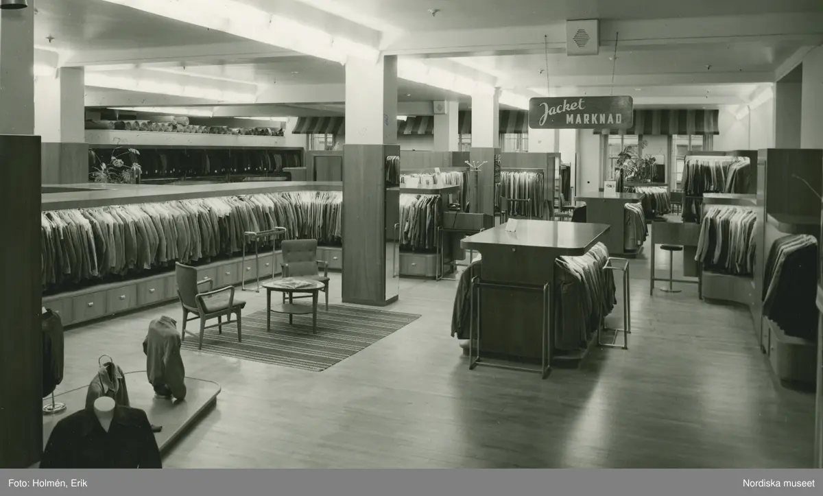 Avdelningen för herrkollektion på Nordiska Kompaniet, fritidskläder.