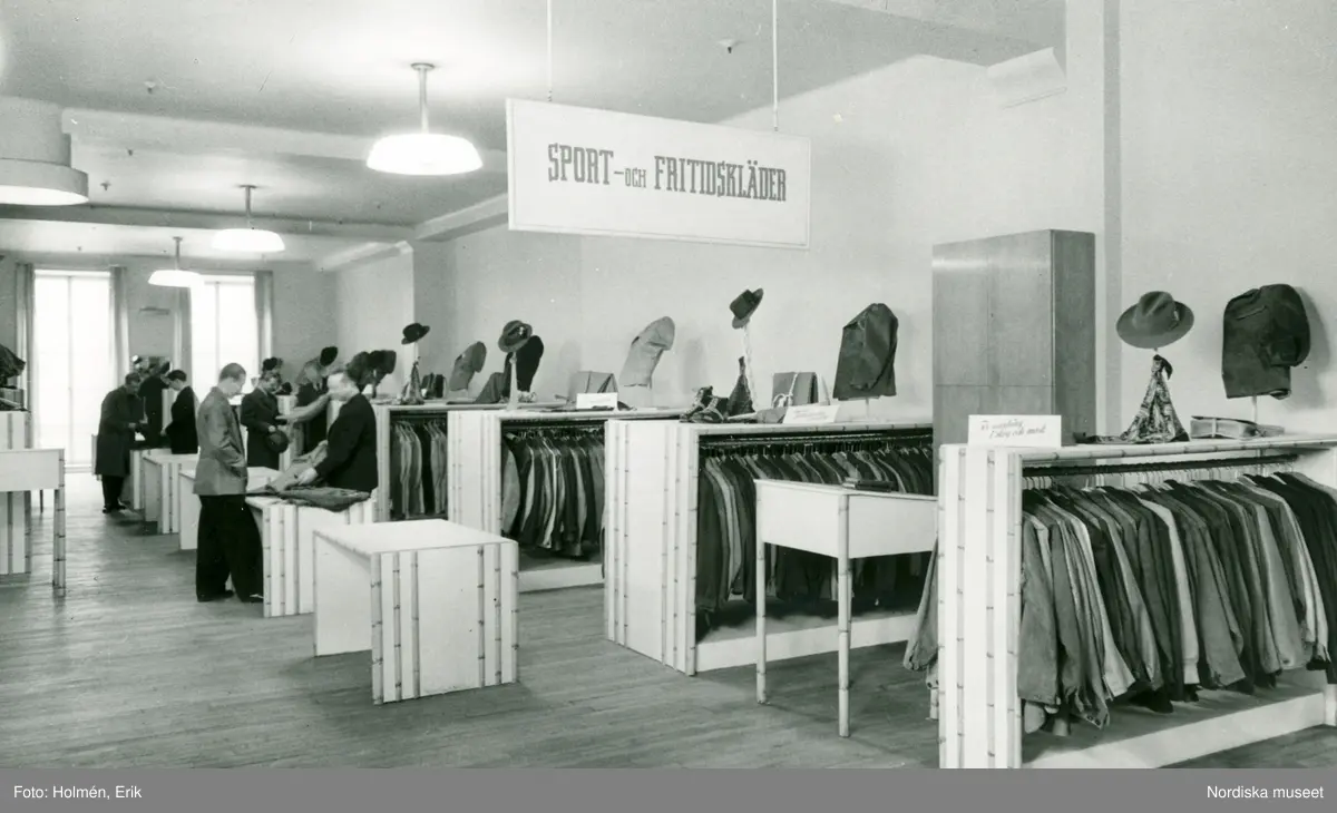 Avdelningen för herrkonfektion på Nordiska Kompaniet, sport och fritidskläder.