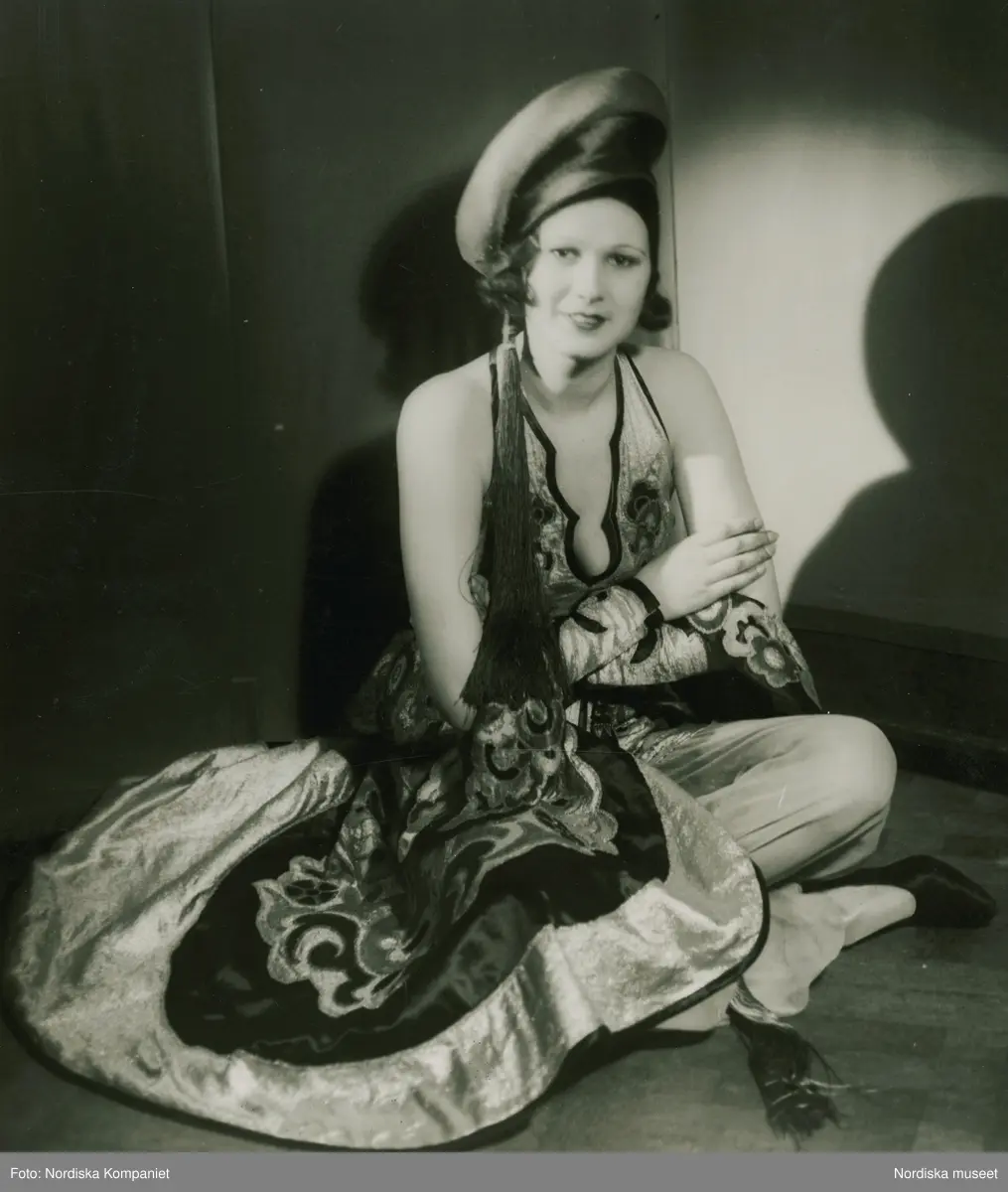 Titel: Modell i maskeraddräkt, ""Mi Baba" från Carnaval de Venise".