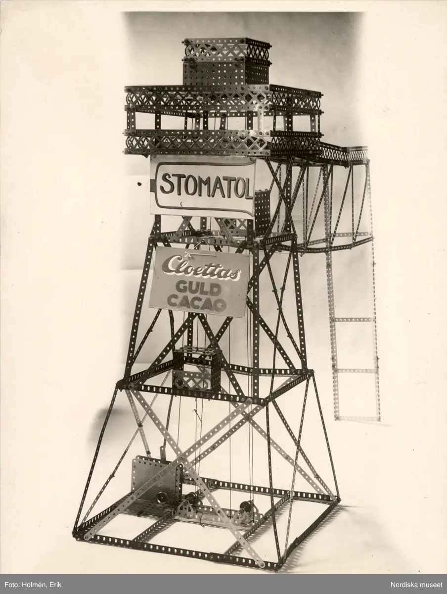 Byggsats Meccano, 1925. Katarinahissen med reklamskyltar.