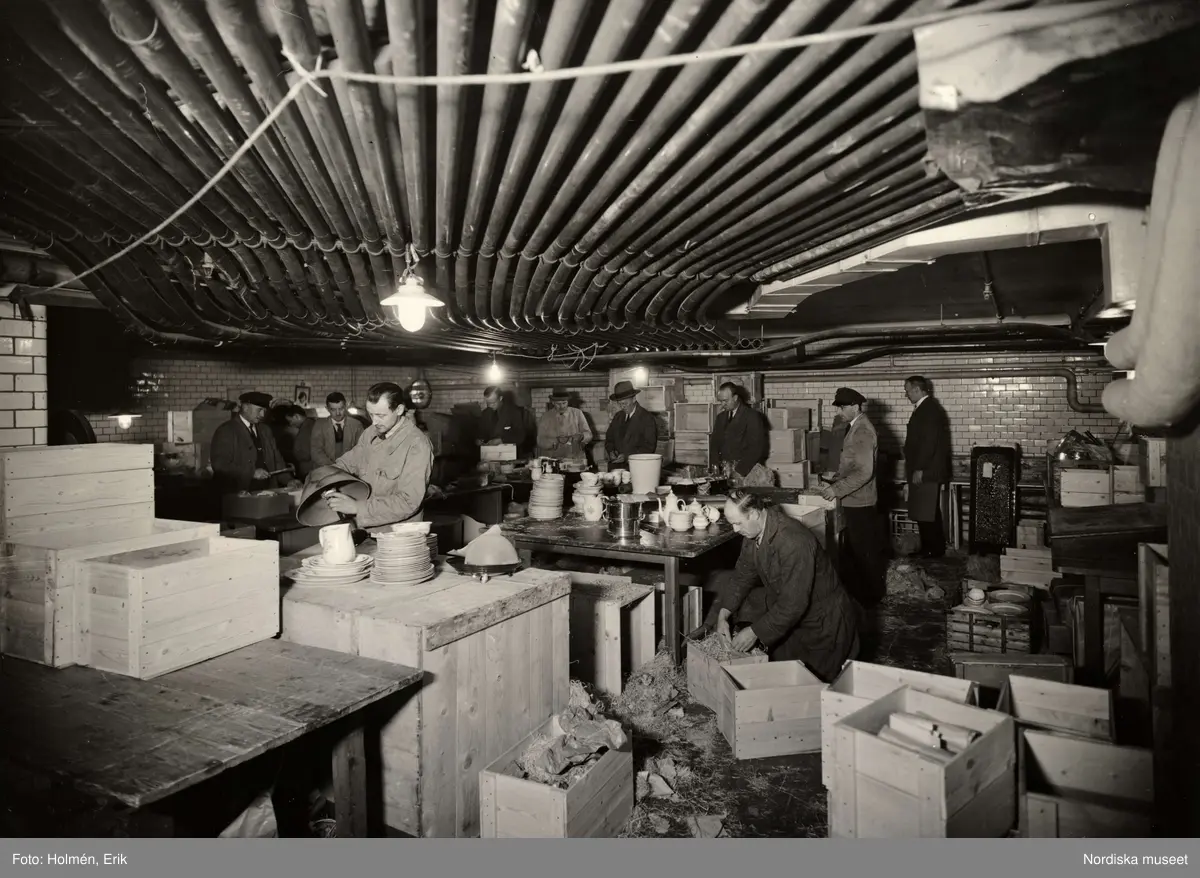 En del av packningslokalerna i källaren (för ömtåligare gods som ej sändes i pakettrumman). År 1931 Nordiska Kompaniet.