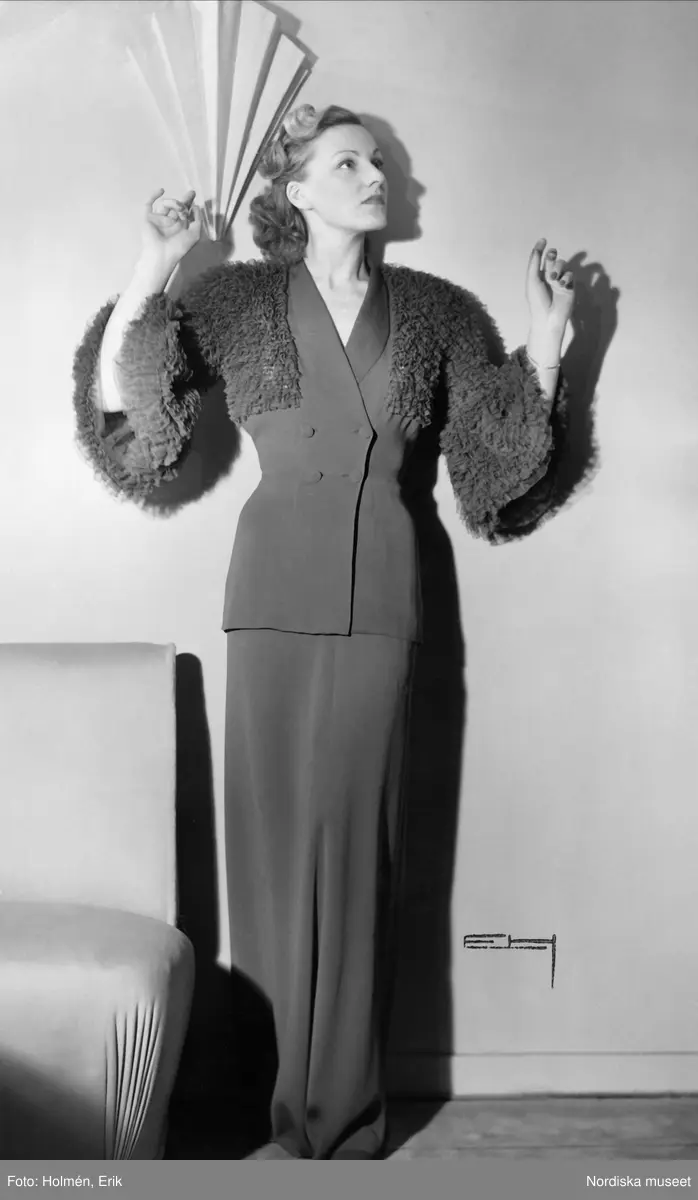 Modell i aftonklänning från Grieder, våren 1945. Nordiska Kompaniet.