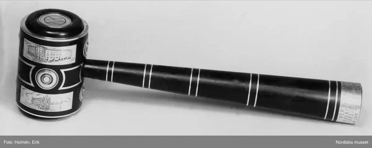 Ordförandeklubba. NK:s 25-årsjub. 1927. Personalens gåva till direktionen och till Gen.konsul Sachs.