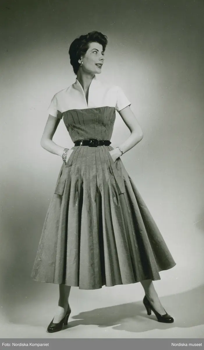 Modell i klänning med skärp, armband och pumps. "Italiana", Egen atelier.