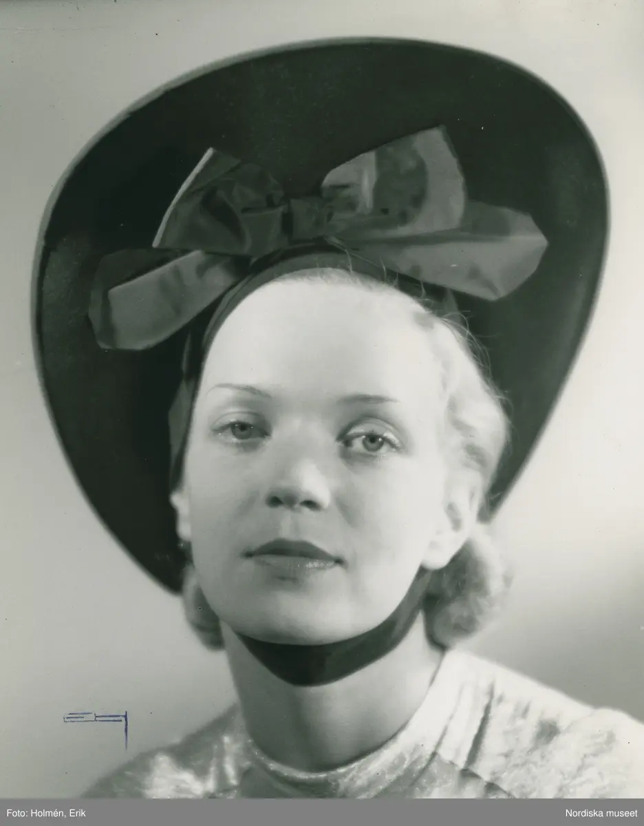Fb, Porträtt av kvinna i hatt av Madame Alphonsine. Svart filt med hakband.