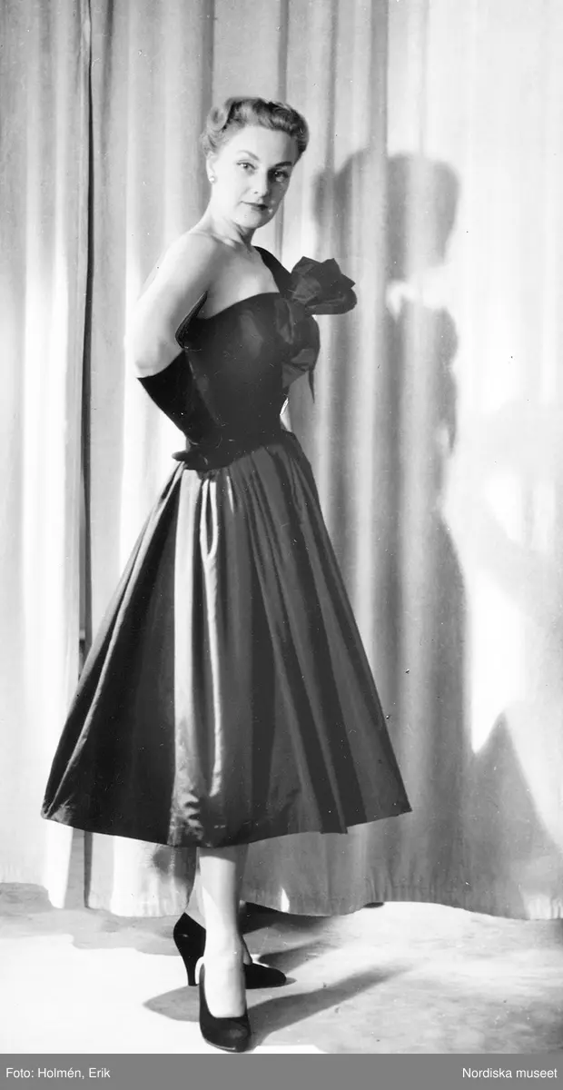 Modell i klänning med rosett, handskar och pumps från Dior.