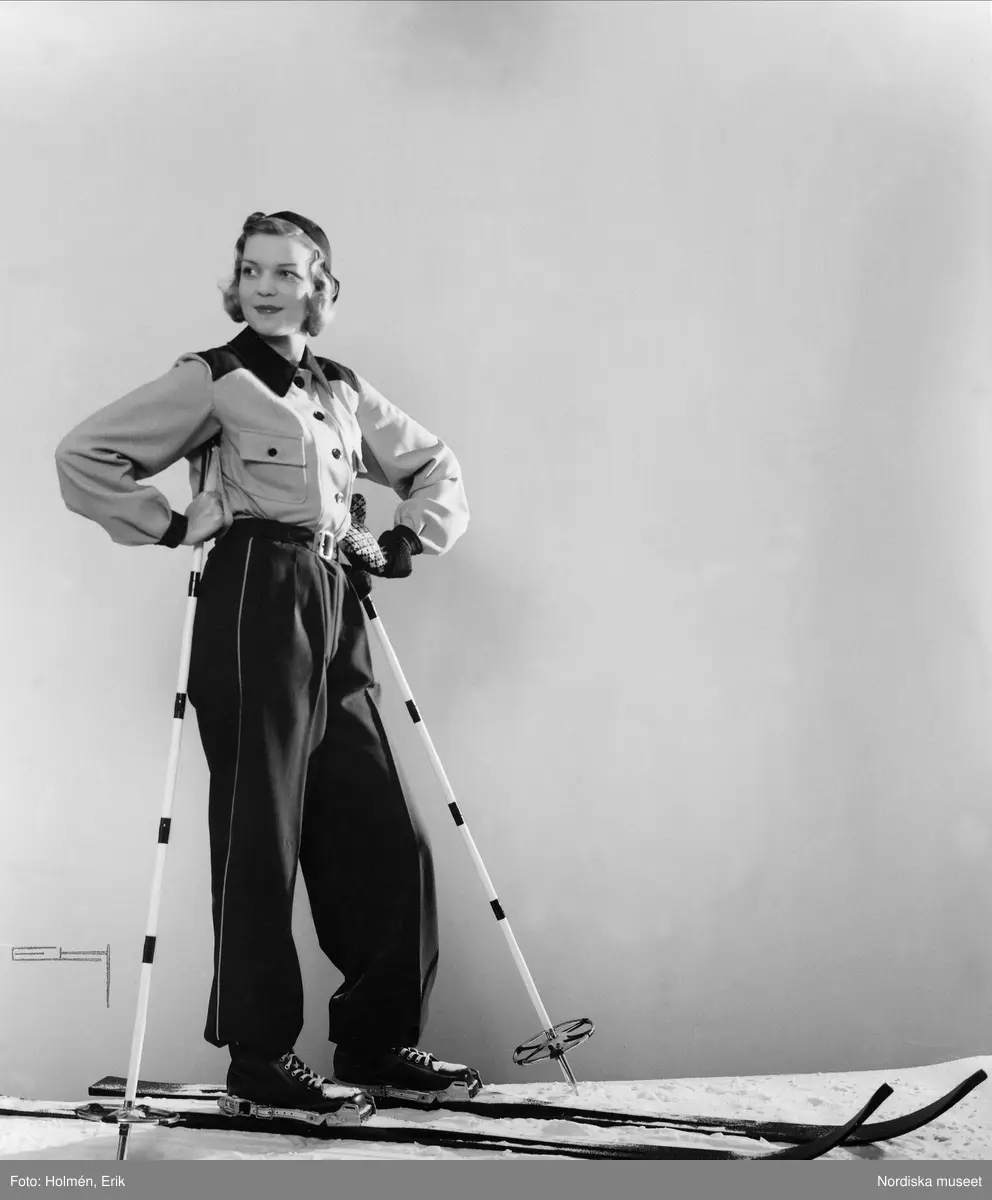 Sportkläder. Kvinna på skidor. Nordiska Kompaniet.