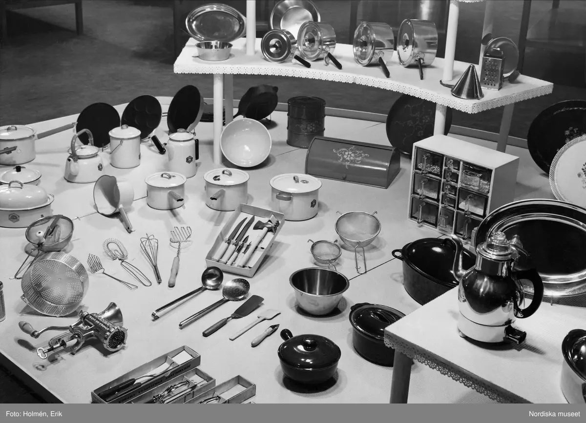 Diverse köksredskap på Utställningen Brud och Hem våren 1947, Nordiska Kompaniet.