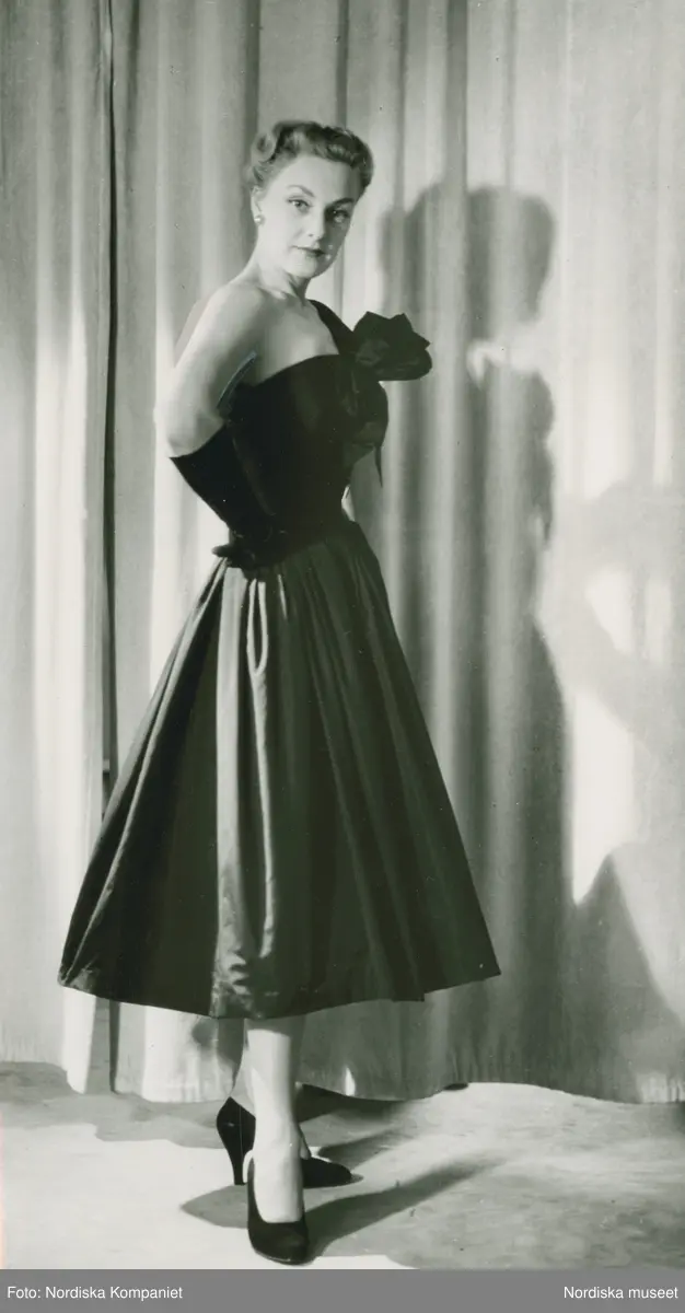 Modell i klänning med rosett, handskar och pumps. Från Dior.