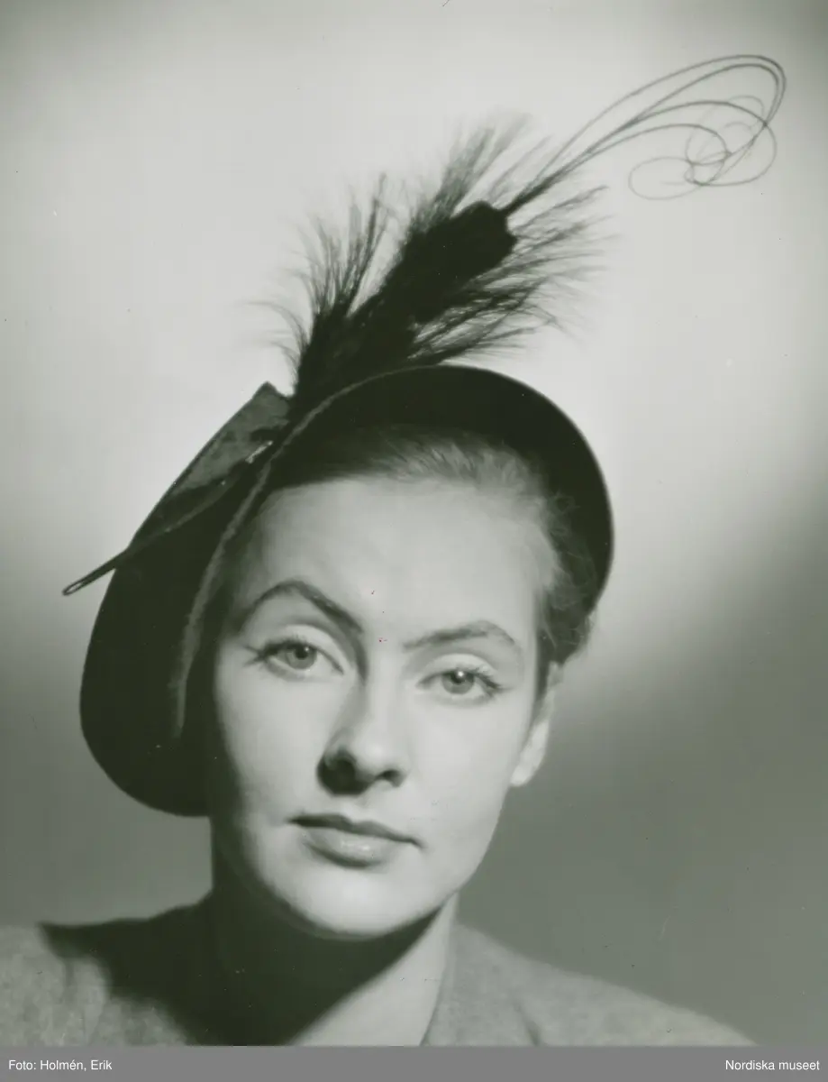 Porträtt av kvinna i svart pannehatt monterad med ett crosse.