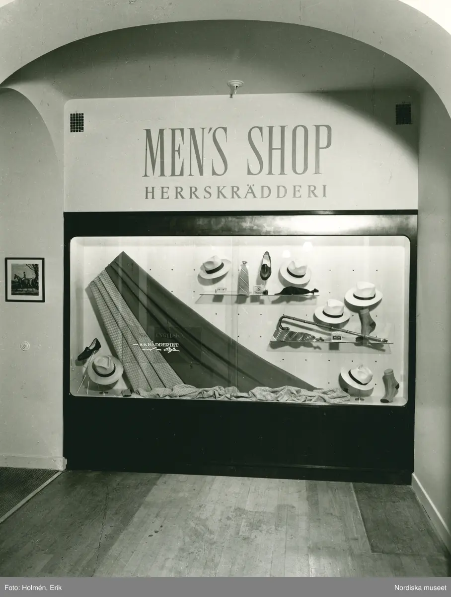 Nordiska Kompaniets, "Men´s shop", herrskrädderi, skyltfönster.