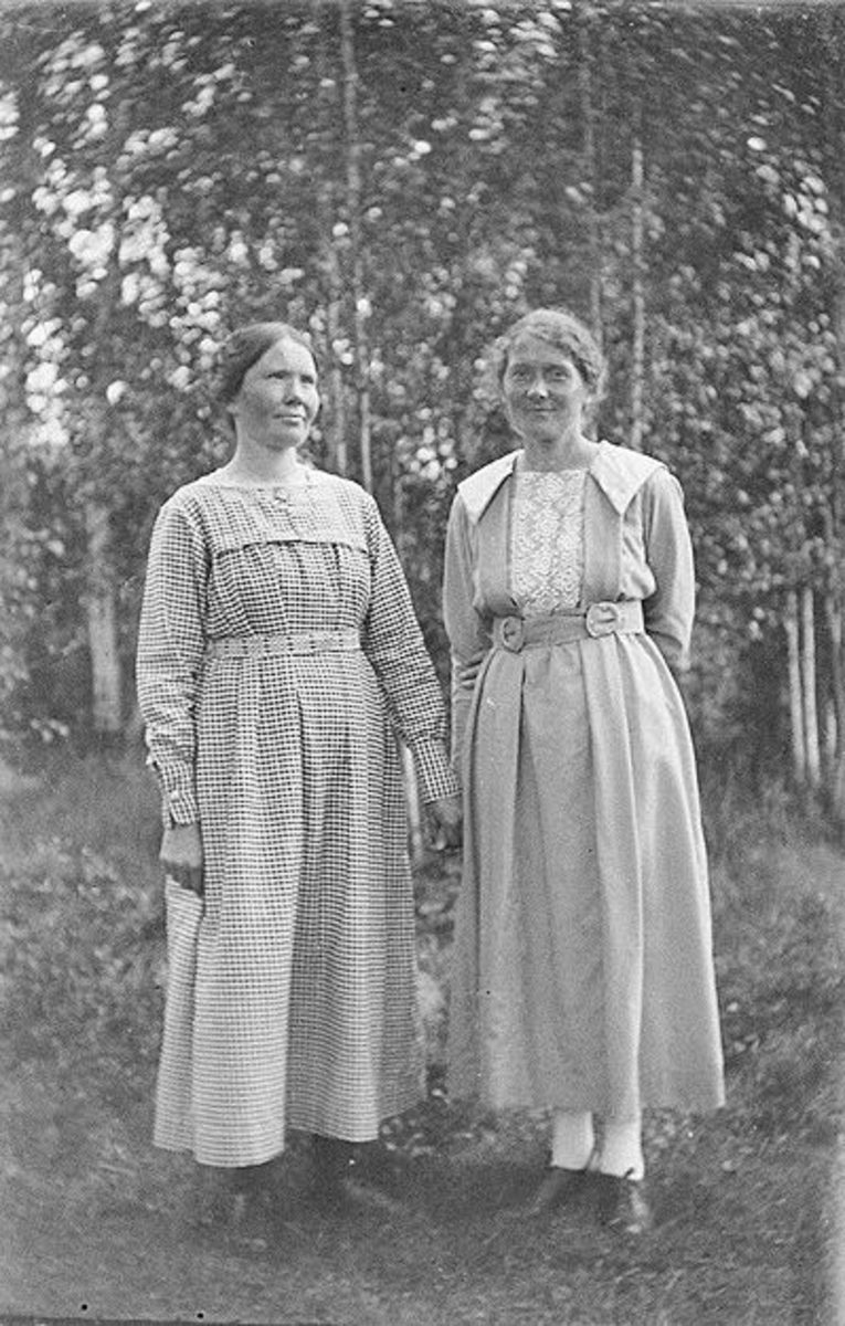 Helporträtt av två kvinnor i utomhusmiljö. Lima, Dalarna