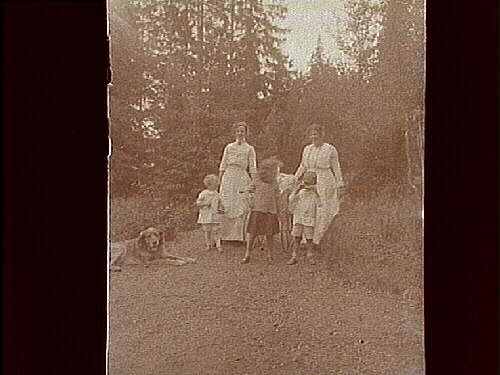 Gerda Thermaenius med barnen och barnsköterskan.