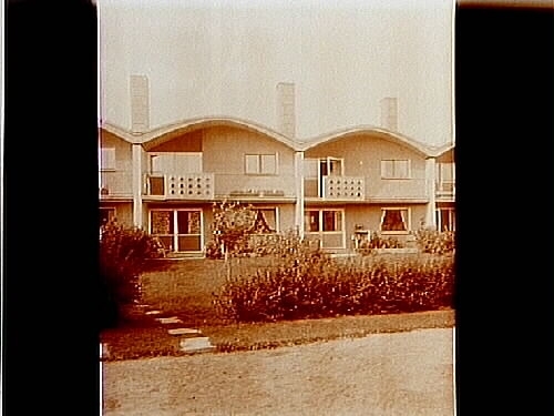 Bilden visar "Kålmasken", berömda radhus skapade av den engelske arkitekten Ralph Erskine.