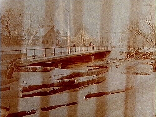 Nya Hagabron, de sista bjälkarna från den gamla bron avlägsnas.