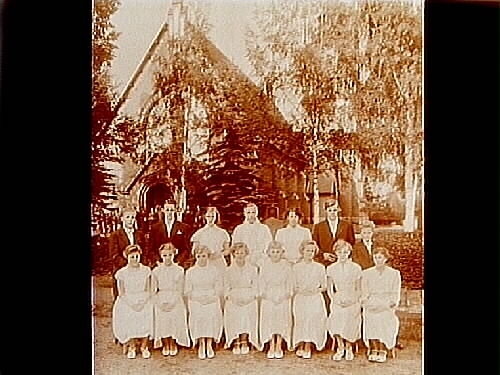Privata konfirmander, tio flickor, fyra pojkar och kyrkoherde Berndt Bäcklund.