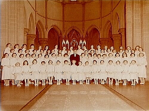 Konfirmander, 75 flickor och pastor Inge Lagerstedt.