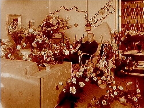Titel: Algot Backéus 50 årsdag. Rumsinteriör, en man.