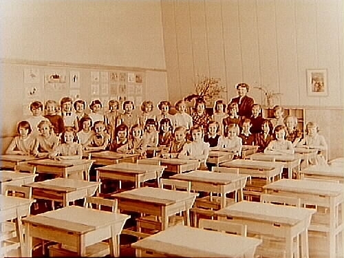 Vasaskolan, klassrumsinteriör, 33 flickor med lärarinna fröken Karin Welinder, klass 4g, sal 12.